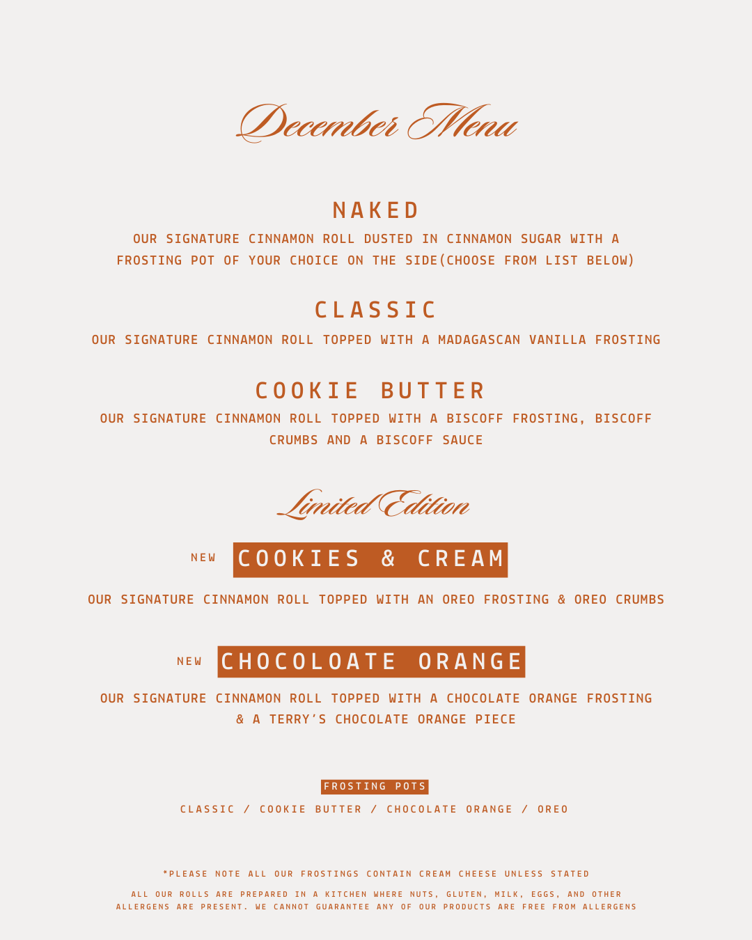 CLICK HERE FOR ALLERGEN CHART